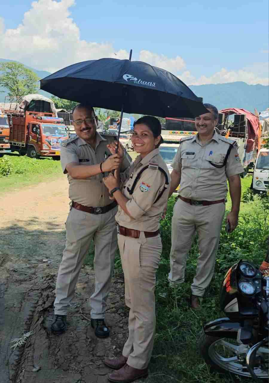 वरिष्ठ पुलिस अधीक्षक देहरादून द्वारा कांवड़ मेला में नियुक्त अधिकारी एवं कर्मचारी गणों के उत्साह वर्धन हेतु आवश्यक सामग्री जैसे छतरी, बरसाती, पानी एवं फल फ्रूट की व्यवस्था करने हेतु आदेशित किया गया है। जिसके अनुपालन में कांवड़ मेला में नियुक्त लगभग 120 अधिकारी एवं कर्मचारीगणों को देहरादून पुलिस द्वारा बरसाती एवं छतरी हेतु बांटी गई, जिससे ड्यूटी पर नियुक्त अधिकारी/कर्मचारी भारी बारिश तथा तेज धूप से अपना बचाव करते हुए अपने कर्तव्यों का निर्बाधित रूप से निर्वहन कर सकें।