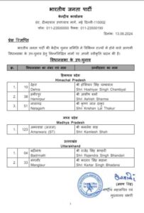 भाजपा ने बद्रीनाथ और मंगलौर विधानसभा सीट पर उपचुनाव के लिए घोषित किए प्रत्याशी