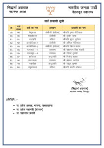 बीजेपी ने जारी की 100 पार्षदों प्रत्याशियो की सूची,,,