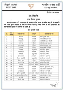 बीजेपी ने जारी की 100 पार्षदों प्रत्याशियो की सूची,,,