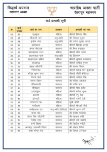 बीजेपी ने जारी की 100 पार्षदों प्रत्याशियो की सूची