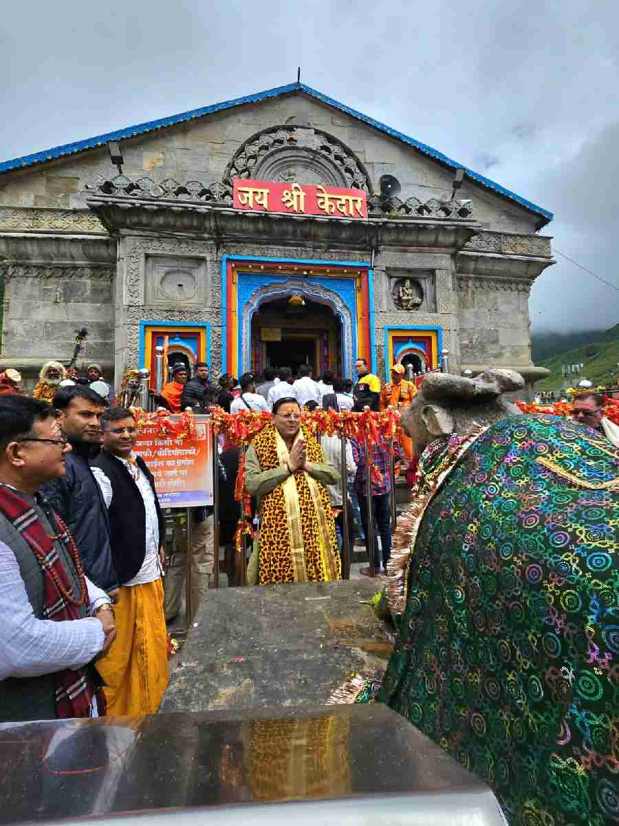 एक दिवसीय दौरे पर बाबा केदारनाथ धाम के दर्शनों को पहुंचे मुख्यमंत्री पुष्कर सिंह धामी का कमिश्नर गढ़वाल विनय शंकर पांडे, आईजी पुलिस गढ़वाल करन सिंह नगन्याल, जिलाधिकारी डॉ सौरभ गहरवार एवं पुलिस अधीक्षक डॉ विशाखा ने वीआईपी हैलीपैड पर उनका स्वागत किया। इसके बाद, मुख्यमंत्री तीर्थ पुरोहित समाज एवं मुख्य पुजारी से मिले। मुख्यमंत्री ने बाबा केदारनाथ मंदिर में प्रवेश कर विशेष पूजा अर्चना एवं रुद्राभिषेक कर संपूर्ण विश्व एवं मानवता के कल्याण की कामना की। इस दौरान उन्होंने उत्तराखंड के सतत विकास के लिए भी बाबा केदार से आशीर्वाद मांगा। करीब 20 मिनट पूजा के बाद मुख्यमंत्री ने धाम में दर्शन करने पहुंचे श्रद्धालुओं एवं स्थानीय लोगों का अभिवादन कर श्रावण मास की शुभकामनाएं दीं। मुख्यमंत्री पुष्कर धामी ने धाम के मुख्य पुजारी शिव शंकर लिंग का आशीर्वाद प्राप्त किया, साथ ही तीर्थ पुरोहितों के साथ धाम में चल रहे निर्माण एवं अन्य कार्यों के संबंध में चर्चा कर सुझाव मांगे। उन्होंने केदारपुरी में चल रहे पुनर्निर्माण कार्यों का की समीक्षा करते हुए निर्माण एवं पुनर्निर्माण कार्यों में तेजी लाने एवं गुणवत्ता का ध्यान रखते हुए समयबद्धता के साथ सभी कार्य पूर्ण करने के निर्देश दिए।