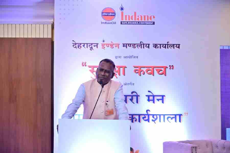 देहरादून मे इंडेन एरिया ऑफिस, देहरादून, इंडियन ऑइल द्वारा सुरक्षा कवच मूहीम के अंतर्गत डिलिवरी मैन कार्यशाला का आयोजन किया गया जिसमे मुख्य अतिथि आर. राजेन्द्रन, CGM UPSO – II थे | सुरक्षा के 8 मंत्र |