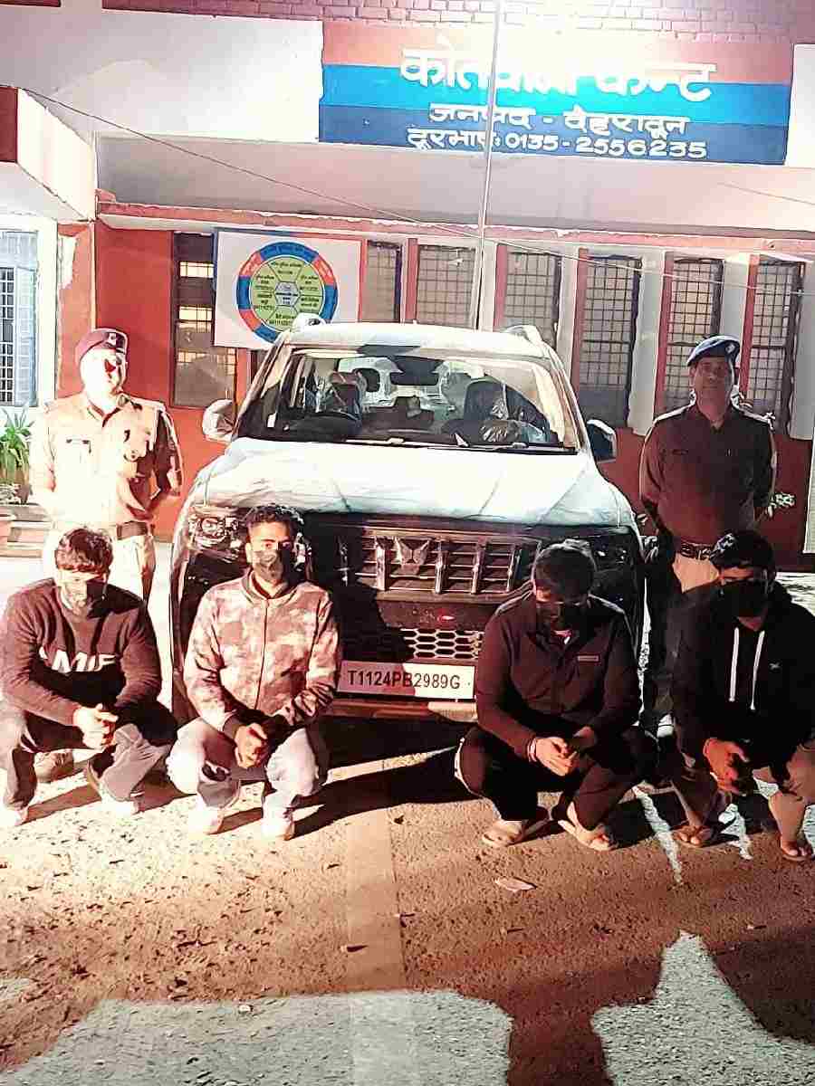सोशल मीडिया पर वायरल वीडियो, जिसमें कुछ युवकों द्वारा गुच्चूपानी क्षेत्र में सार्वजनिक स्थान पर मारपीट कर हुड़दंग किया जा रहा था, उक्त वायरल वीडियो का संज्ञान लेते हुए एसएसपी देहरादून द्वारा थाना प्रभारी कैंट को आवश्यक कार्रवाई के निर्देश दिए गए, जिस पर पुलिस टीम द्वारा वायरल वीडियो में दिख रहे वाहन से वाहन स्वामी के संबंध में जानकारी एकत्रित करते हुए घटना में शामिल 4 अभियुक्तों को चिन्हित कर उनके विरुद्ध पुलिस एक्ट के तहत कार्रवाई की गई, साथ ही घटना में प्रयुक्त वाहन को MV Act में सीज किया गया।