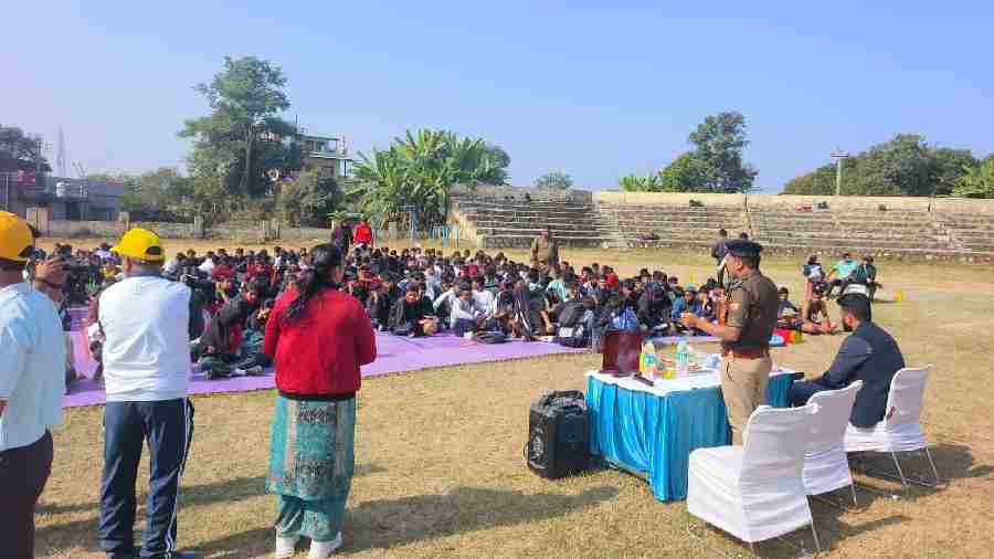 इसी क्रम में आज दिनांक 16 नवंबर 2024 को थाना सहसपुर पुलिस द्वारा मिनी स्टेडियम शंकरपुर में युवा कल्याण विभाग सहसपुर द्वारा आयोजित विकासखंड स्तरीय खेल महाकुंभ में उपस्थित सभी युवा खिलाड़ियों को नशे के दुष्प्रभाव के संबंध में जानकारी देते हुए जागरूक किया गया, साथ ही अपने जीवन में नशे से दूर रहने तथा खेलो को ही अपने जीवन की लत बनाने के लिये प्रेरित किया गया।