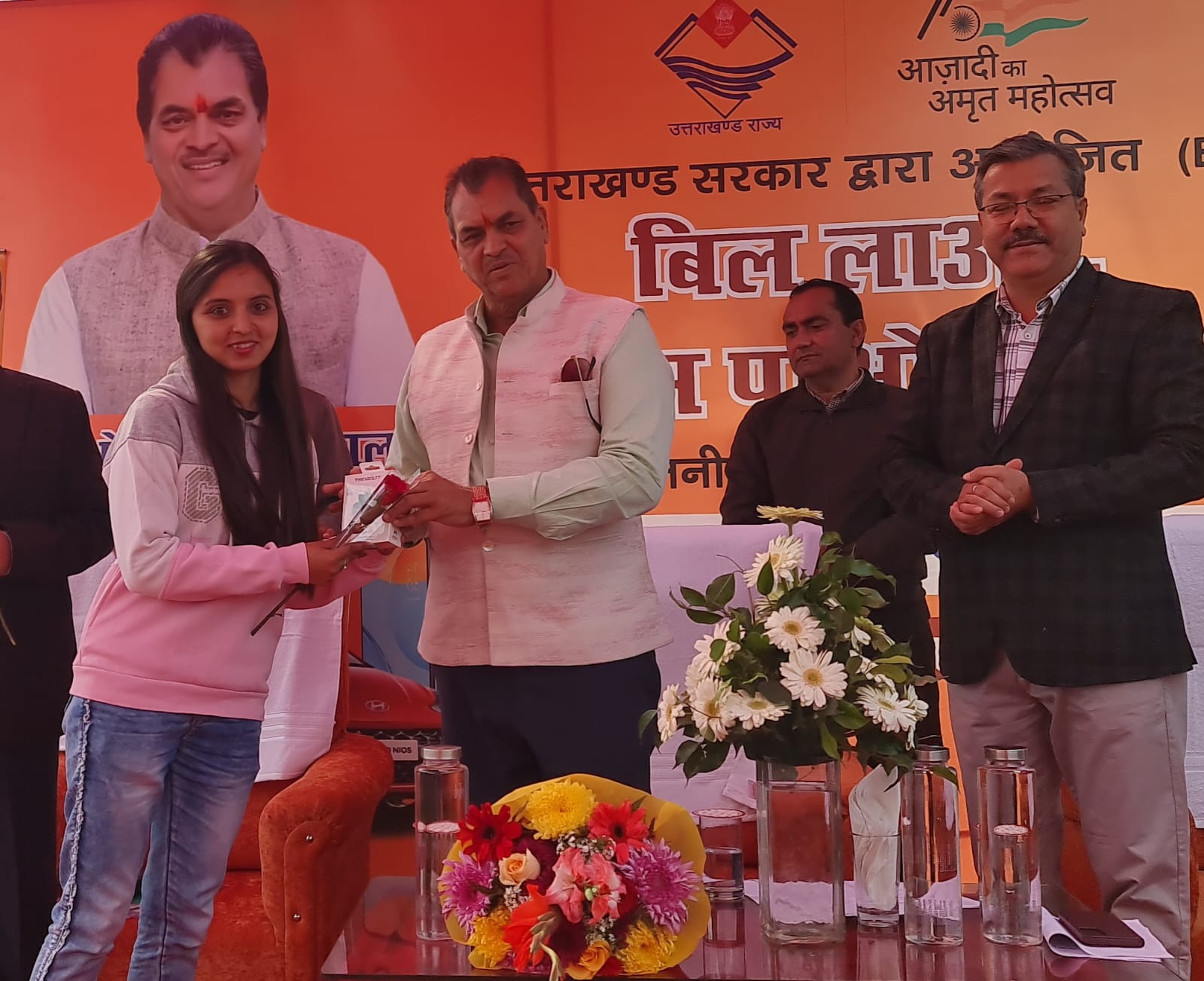 क्षेत्रीय विधायक व वित्त मंत्री डॉ प्रेमचंद अग्रवाल ने बिल लाओ ईनाम पाओ योजना के तहत माह अक्टूबर और नवंबर के विजेताओं को स्मार्ट फ़ोन, स्मार्ट वाच, एयर बड्स वितरित किये। इस दौरान विजेताओं ने योजना के लिए सरकार के प्रयासों की प्रशंसा की।