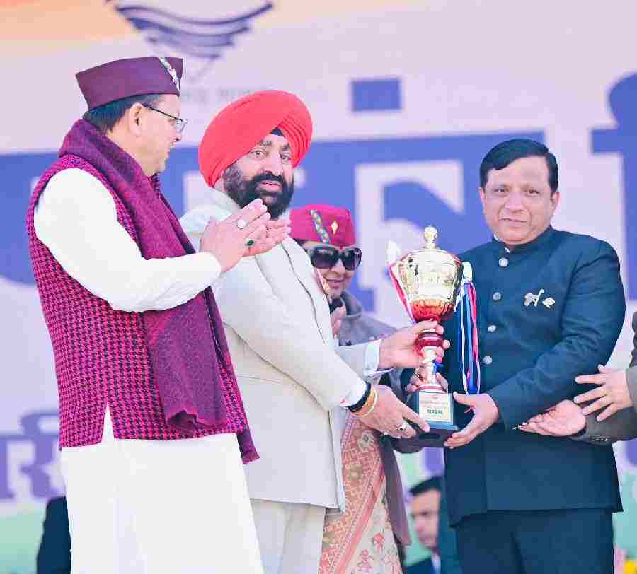 राज्यपाल लेफ्टिनेंट जनरल गुरमीत सिंह (से. नि.) और मुख्यमंत्री पुष्कर सिंह धामी ने सूचना विभाग की झांकी को प्रथम स्थान मिलने पर महानिदेशक सूचना बंशीधर तिवारी को पुरस्कार प्रदान किया