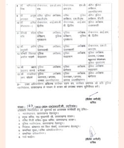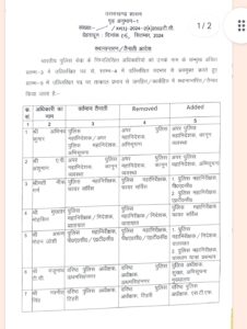 पुलिस मुख्यालय स्तर पर दायित्व में भी किया गया बदलाव