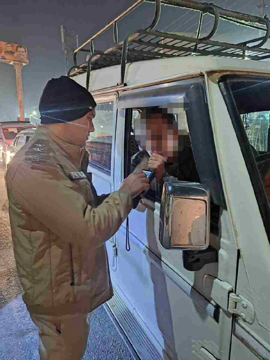 वीकेंड पर रात्रि चेकिंग के दौरान पुलिस टीमो द्वारा प्रत्येक आने- जाने वाले वाहनो की सघन चेकिंग सुनिश्चित करते हुए सभी वाहन चालकों की एल्कोमीटर के माध्यम से जांच की गई।