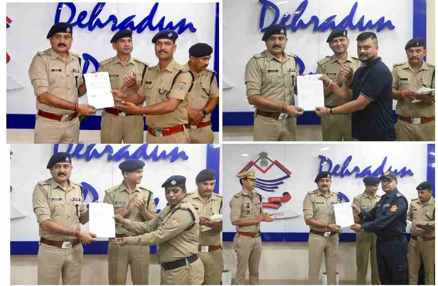 देहरादून : आज दिनांक 08-10-2024 को वरिष्ठ पुलिस अधीक्षक देहरादून द्वारा पुलिस कार्यालय में अधीनस्थ अधिकारियों/कर्मचारियों के साथ गोष्ठी आयोजित की गई। गोष्ठी के दौरान माह सितम्बर में उत्कृष्ठ कार्य करने वाले 62 अधि0/कर्म0 को प्रशस्ति पत्र देकर सम्मानित किया गया,