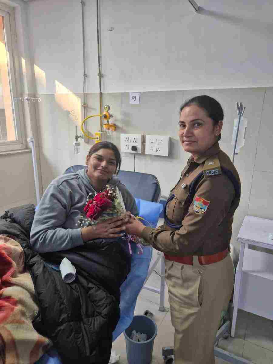 वर्तमान में चल रहे उत्तराखण्ड में चल रहे 38 वें राष्ट्रीय खेलों में विभिन्न राज्यों से आये खिलाडियों द्वारा प्रतिभाग किया जा रहा है, पुलिस द्वारा खिलाडियों की सुरक्षा सुनिश्चित करने के साथ-साथ नियमित रूप से उनसे सवांद कर उनकी समस्याओं के सम्बन्ध में जानकारी प्राप्त की जा रही है। इसी क्रम में आज दिनांक: 01-02-25 को राष्ट्रीय खेलों में प्रतिभाग करने आई पंजाब प्रदेश की बास्केटबाल टीम की एक महिला खिलाडी का स्वास्थय खराब होने तथा उसके अस्पताल में भर्ती होने की सूचना पुलिस को प्राप्त हुई । जिस पर पुलिस अधीक्षक ऋषिकेश श्रीमती जया बलोनी द्वारा तत्काल अस्पताल पहुंचकर उपचाराधीन महिला खिलाडी से भेंट कर उसकी कुशलक्षेम की जानकारी ली तथा उनके शीघ्र स्वस्थ होकर दोबारा राष्ट्रीय खेलों में प्रतिभाग करने की कामना की गई।