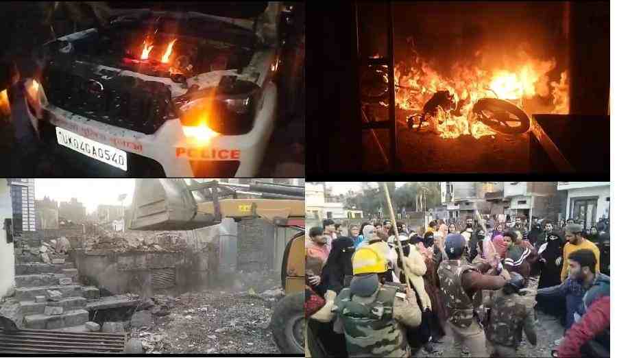 हल्द्वानी के थाना बनभूलपुरा क्षेत्र के अंतर्गत मलिक के बगीचे में अवैध मदरसे एवं नमाज स्थल को आज नगर निगम की टीम ने जेसीबी मशीन लगाकर ध्वस्त कर दिया है। नगर आयुक्त पंकज उपाध्याय, सिटी मजिस्ट्रेट ऋचा सिंह, एसडीएम परितोष वर्मा समेत नगर निगम की बड़ी संख्या में टीम मौजूद रही। जहां पर अवैध मदरसे एवं नमाज स्थल को जेसीबी लगाकर ध्वस्त किया गया, कोई किसी कार्रवाई के दौरान मलिक के बगीचे के आसपास के रहने वाले तमाम अराजक तत्वों ने पुलिस प्रशासन और पत्रकारों के ऊपर जमकर पथराव किया है जिसमें कई पुलिसकर्मी और पत्रकार घायल हुए हैं जिसके बाद पुलिस ने अराजक तत्वों से बल पूर्वक कार्यवाई की पुलिस ने आसु गैस भी छोड़े, इस दौरान एसएसपी नैनीताल प्रह्लाद मीणा, थाना बनभूलपुरा एसओ नीरज भाकुनी,एसओ मुखानी एसओ प्रमोद पाठक,कालाढूंगी एसओ नंदन सिंह रावत,समेत भारी संख्या में पुलिस फोर्स तैनात रही। नगर आयुक्त पंकज उपाध्याय ने बताया अवैध मदरसे से एवं नमाज वाले जगह पूरी तरह अवैध है। जिसके पास एक तीन एकड़ जमीन पर नगर निगम ने कब्जा पूर्व में ले लिया था, लेकिन अवैध मदरसे एवं नमाज स्थल को सील कर दिया था और अब इसे आज ध्वस्त कर दिया गया है कार्रवाई के दौरान पथराव करने वाले अराजक तत्वों को चिन्हित किया जा रहा है और उनकी गिरफ्तारी की जा रही है ।