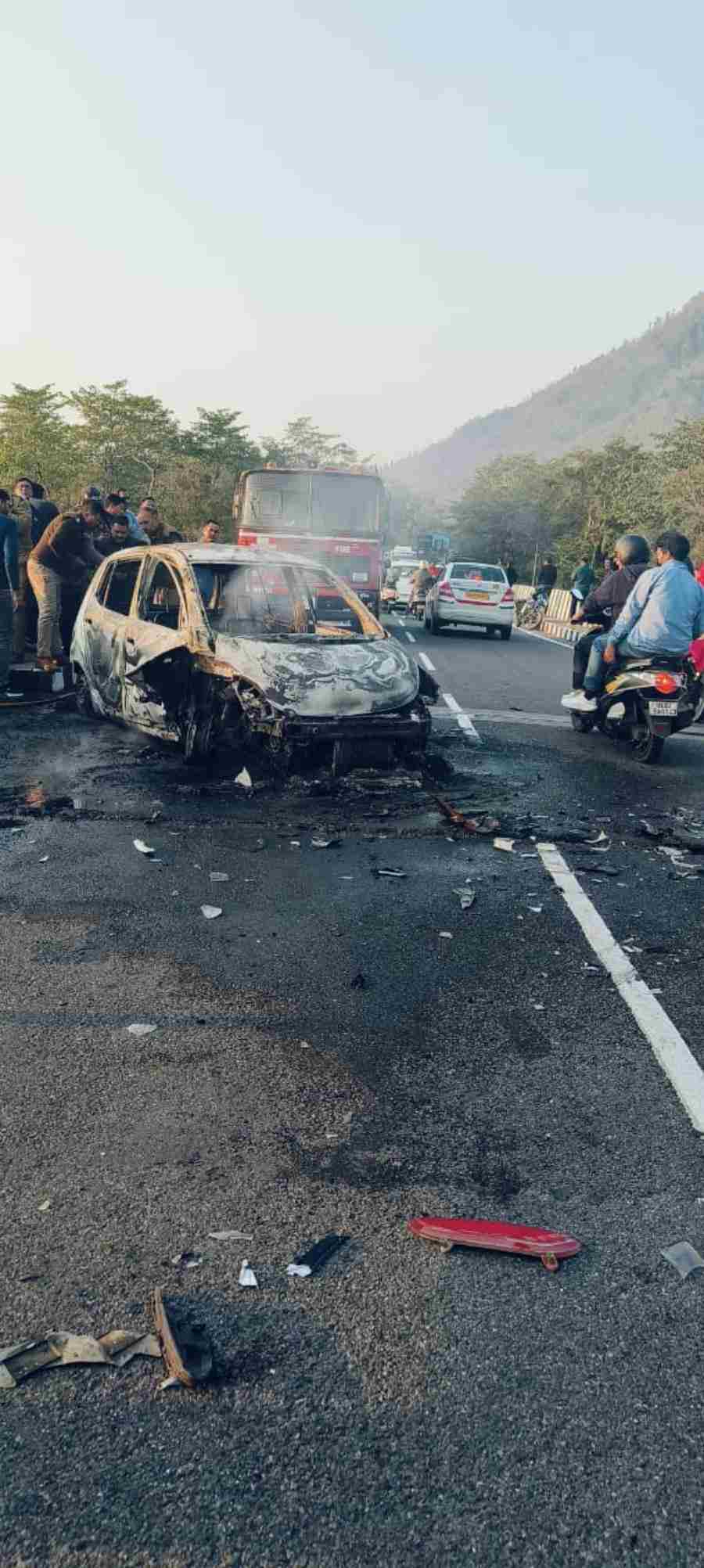 मौके पर पाया गया कि सिरवालगढ़ पुल पर दो गाड़ियों के बीच भिड़ंत हुई थी। इसमें से आई 20 – UK 07 BJ 8417 गाड़ी की दाहिनी साइड से आग लगी हुई थी और आई 10 – DL 10 CD 6926 गाड़ी टकराने के बाद आग लगने के कारण जल रही थी। आग पर फायर ब्रिगेड की टीम की मदद से काबू पाया गया।